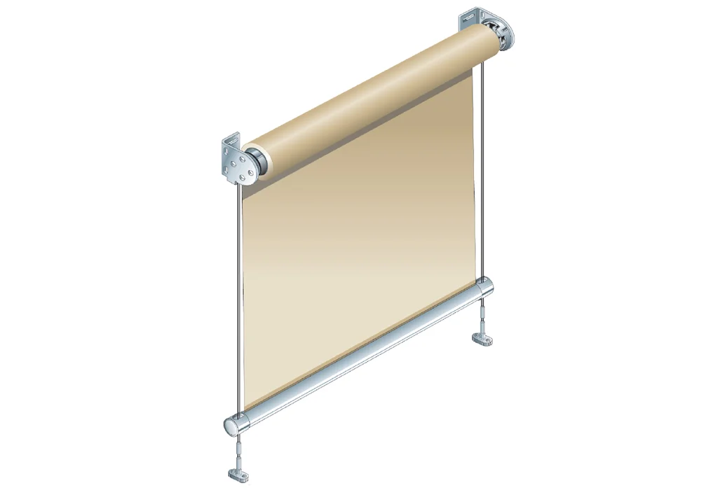 Sistema per tende a rullo con cavi laterali inox.