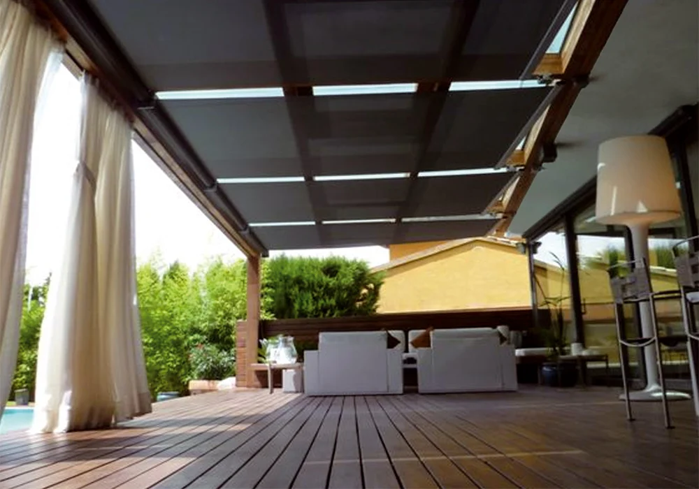 Tens Box TN202: azionamento a motore, con cassonetto di protezione tessuto per tende a rullo triangolari di larghezza massima 400cm e altezza massima 500 cm