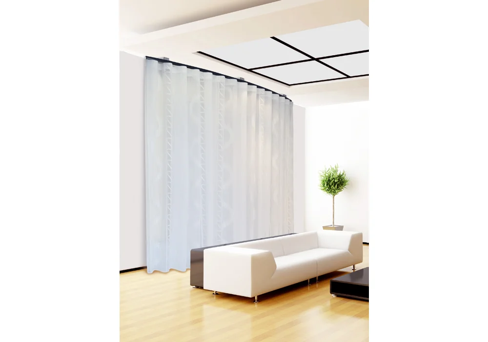 Parte integrante di una nuova collezione di scorritenda di elevato standard qualitativo. Progettato da Interior designers, dotato di specifiche caratteristiche eleganti che ne fanno un prodotto di punta. Linea arrotondata e morbida con la possibilità di realizzare ampie curve per meglio esaltare la tenda e l’ambiente stesso, arricchito da due modelli di finali: MOON e NICE.