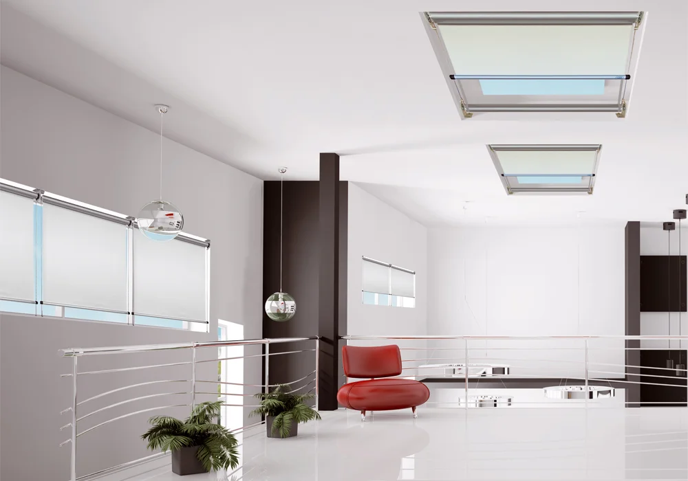 Sistema per lucernari a rullo con azionamento ad arganello o a motore.