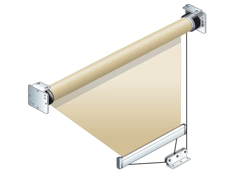 • Tens roll TB150: azionamento a motore dal basso verso l’alto per larghezza massima 400 cm e altezza massima 500 cm