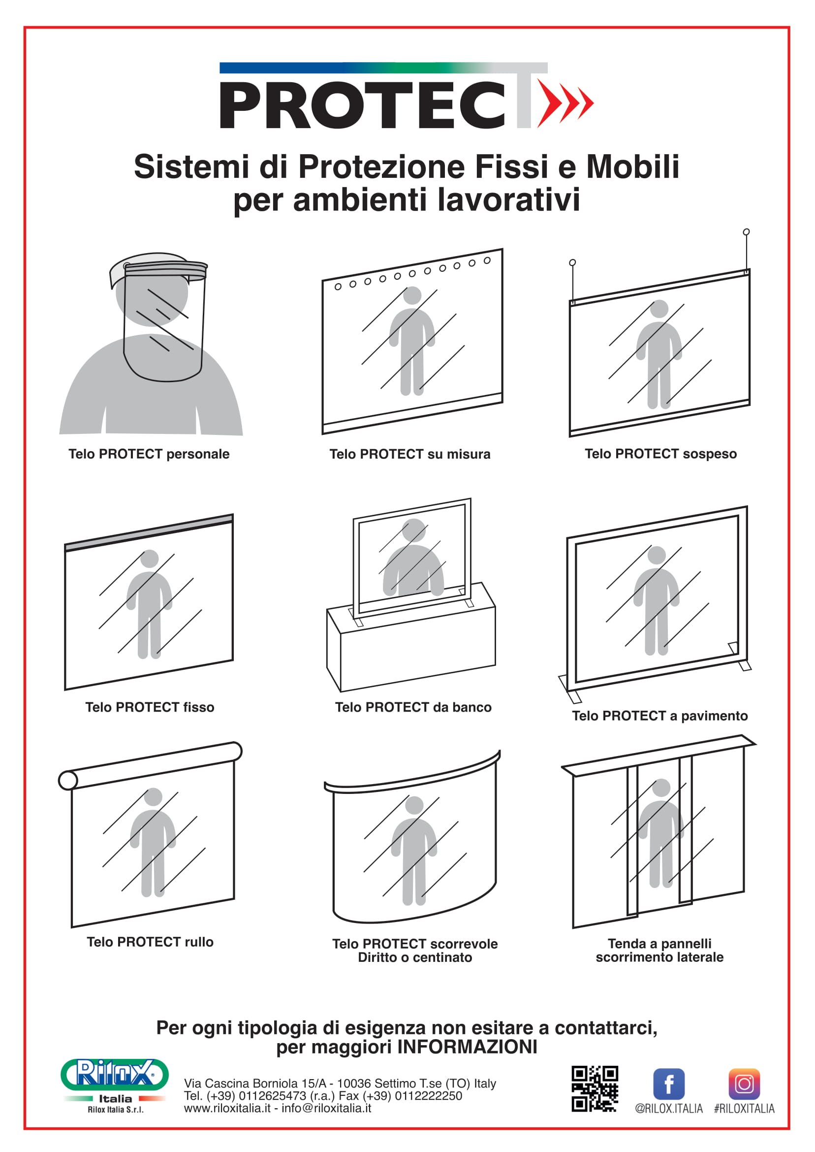 La Linea Protect è stata progettata dal team Rilox Italia per far fronte all’attuale situazione emergenziale. Questi prodotti sono stati sviluppati per potersi adattare a differenti tipologie di contesti e ambienti. Lo scopo di tutti i prodotti della linea è evitare il contatto tra le persone diminuendo così il rischio di contagio.